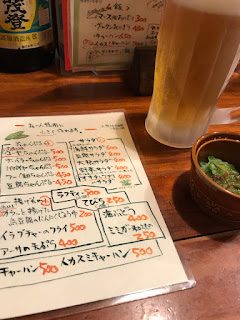 二人で口を揃えて「飲み直しですね!」と意見が一致。シメに決めたユーグレナ・ガーデンに寄って、何時まで空いているか聞くと、21時半ラストオーダーとのこと。では21時までと、あと2時間のお店を探す。良さげな店を探してひと周り。結局、またまた居酒屋に。